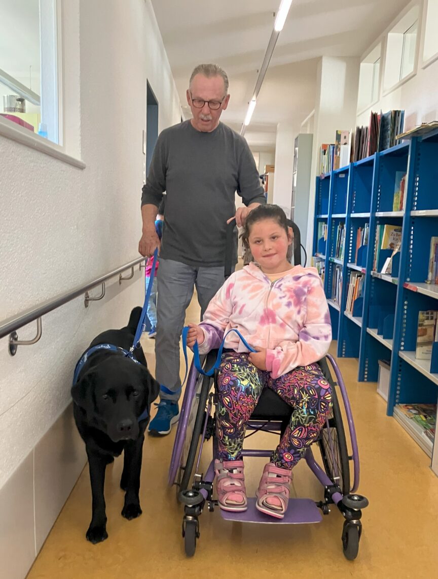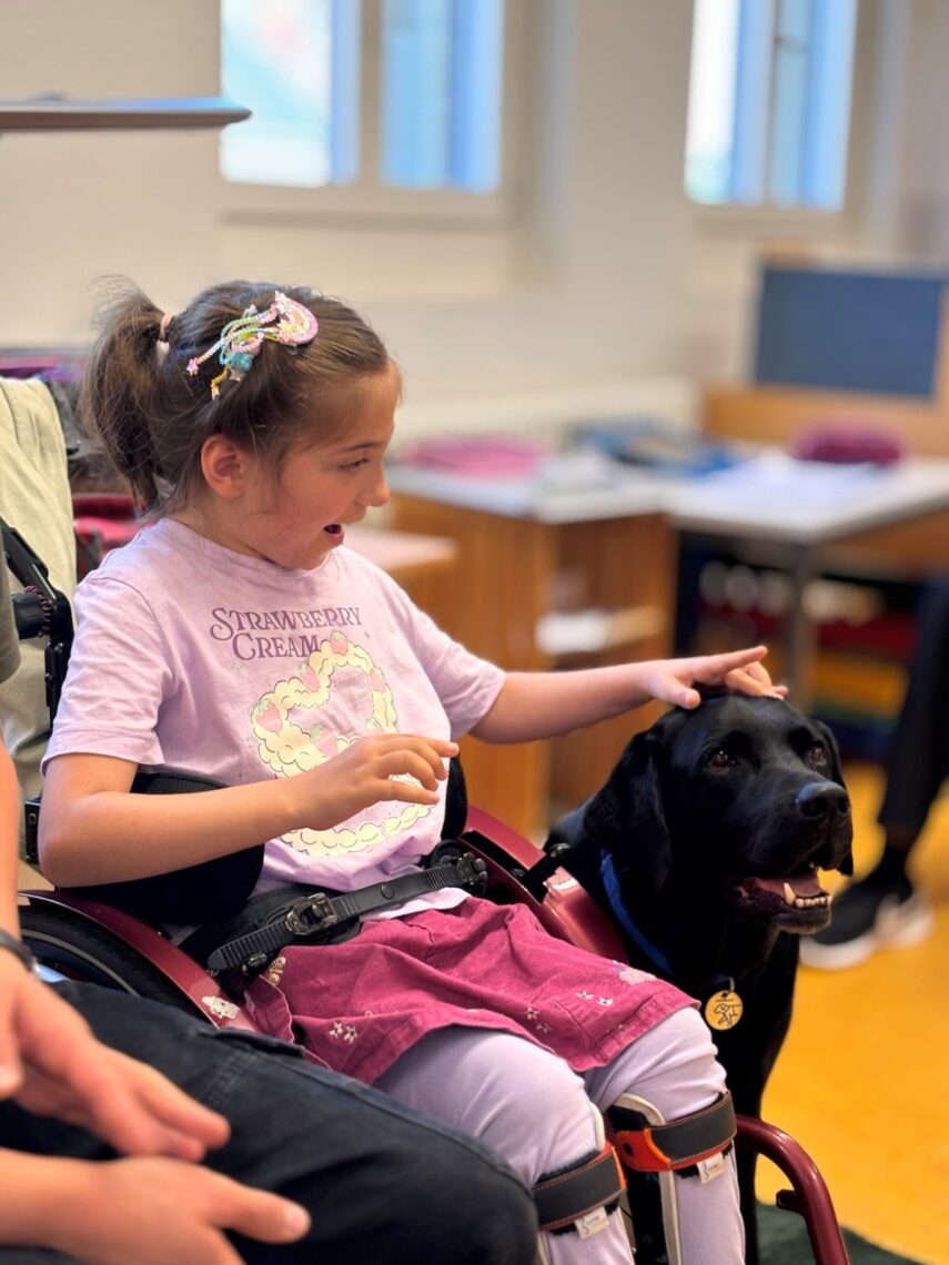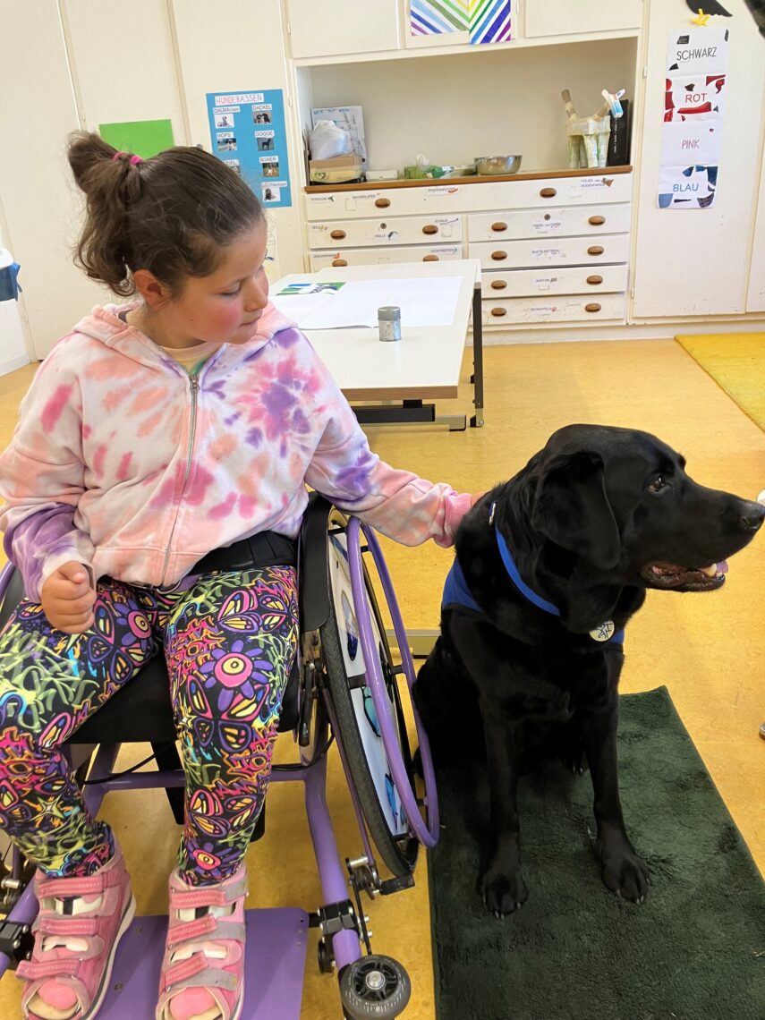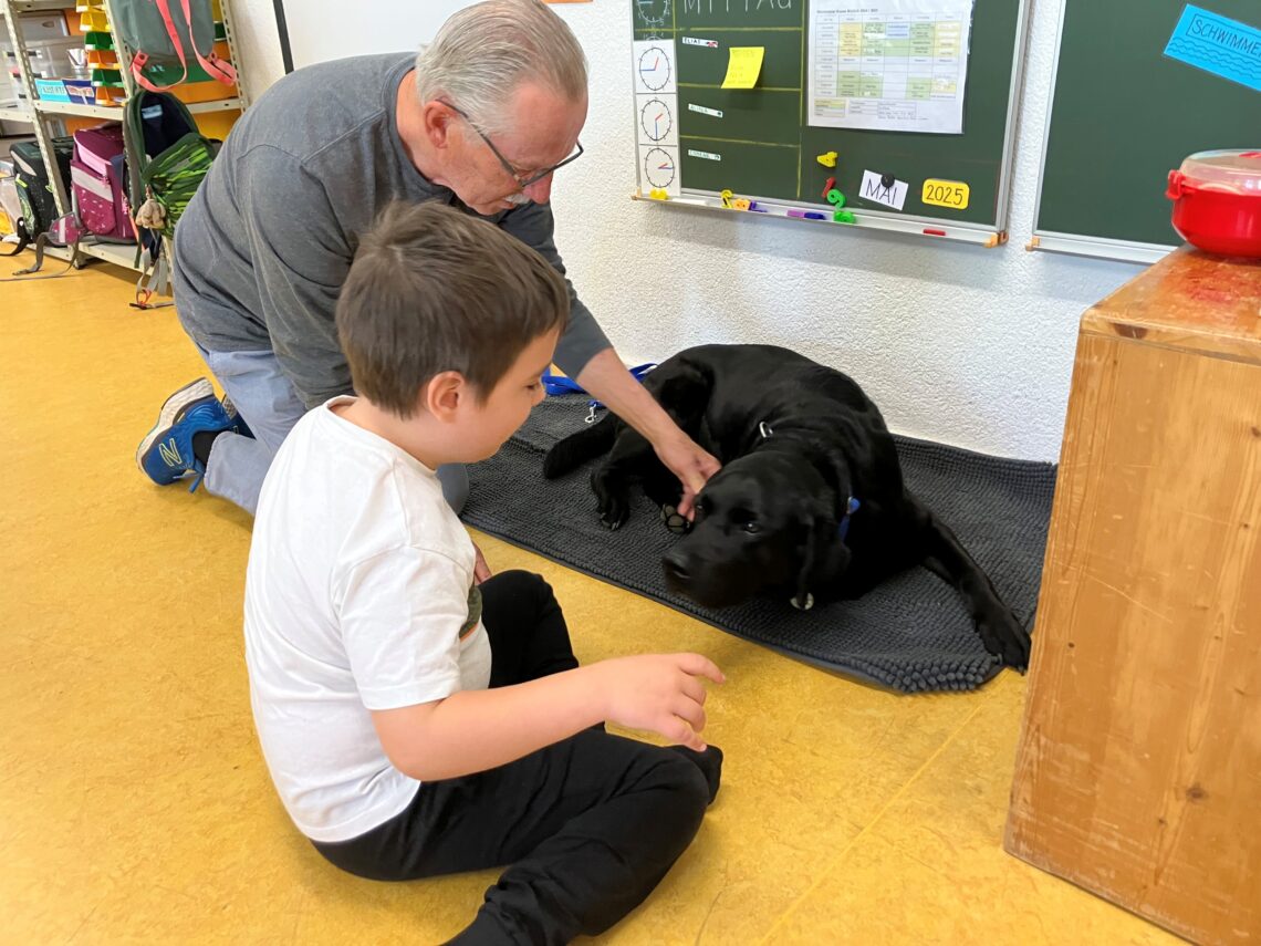 Damit Quentos versteht, was er machen soll, lernen die Schüler*innen auch noch ein paar Wörter auf Italienisch. In seiner Ausbildung wurde das Tier nämlich darauf trainiert, auf Befehle in italienischer Sprache zu reagieren. Quentos erweist sich als äusserst geduldiger, folgsamer und kluger Gefährte für die Unterstufen-Kinder. Nach einer Stude jedoch sind alle müde und brauchen eine wohlverdiente Pause. Der Abschied ist herzlich – alle freuen sich aufs Wiedersehen im nächsten Monat.