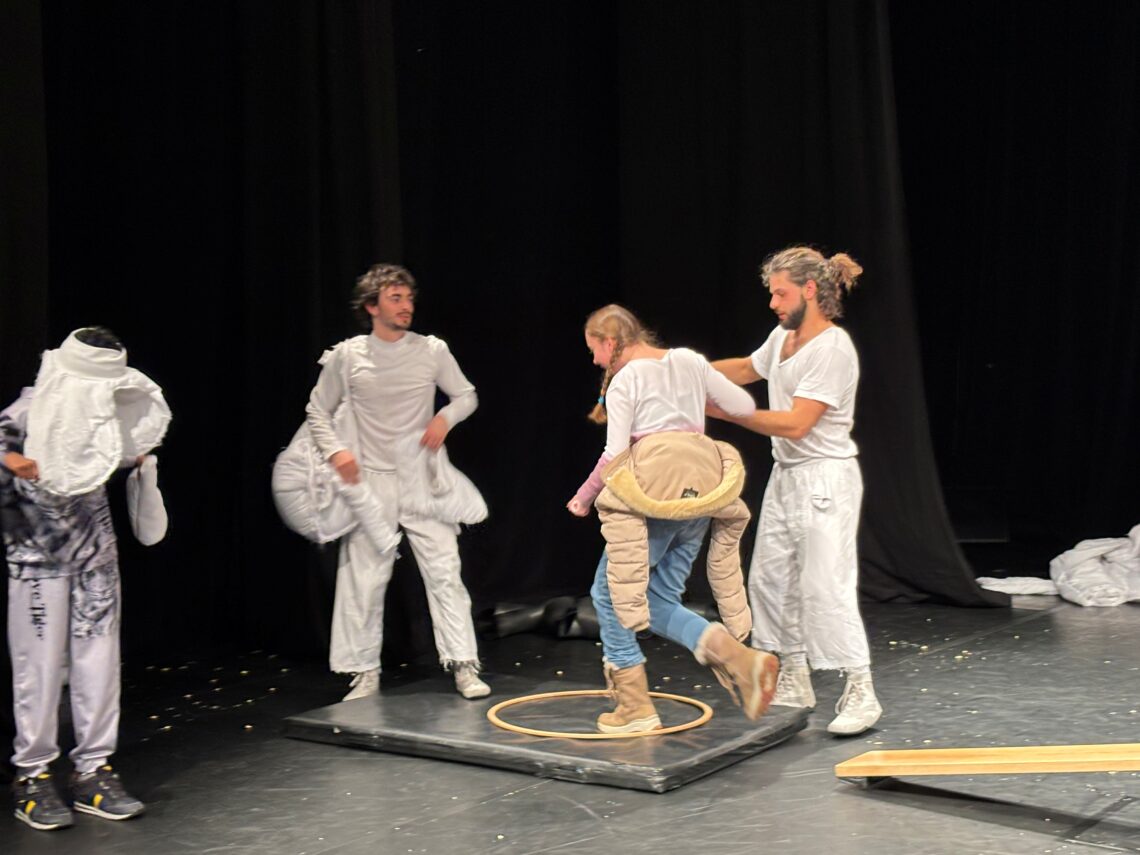 Die jüngsten Schüler*innen besuchten schliesslich die Aufführung «Actapalabra». Auch dies ein Stück, das ohne Worte auskommt und auf verschiedenste Art und Weise Alltägliches und Aussergewöhnliches darstellt. Besonders spannend war dieses Stück auch darum, weil es vor der Aufführung die Möglichkeit gab, hinter der Bühne mit den Schauspielern ein paar Worte zu wechseln.