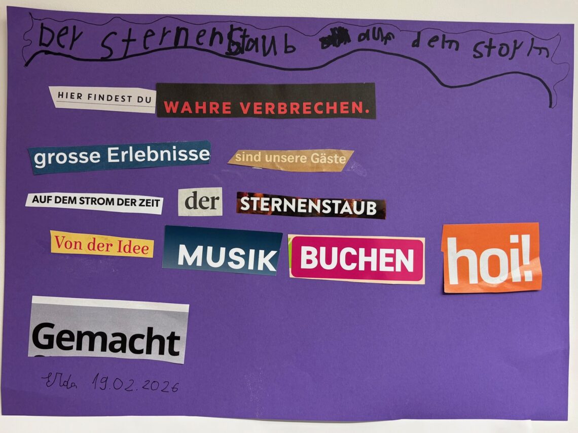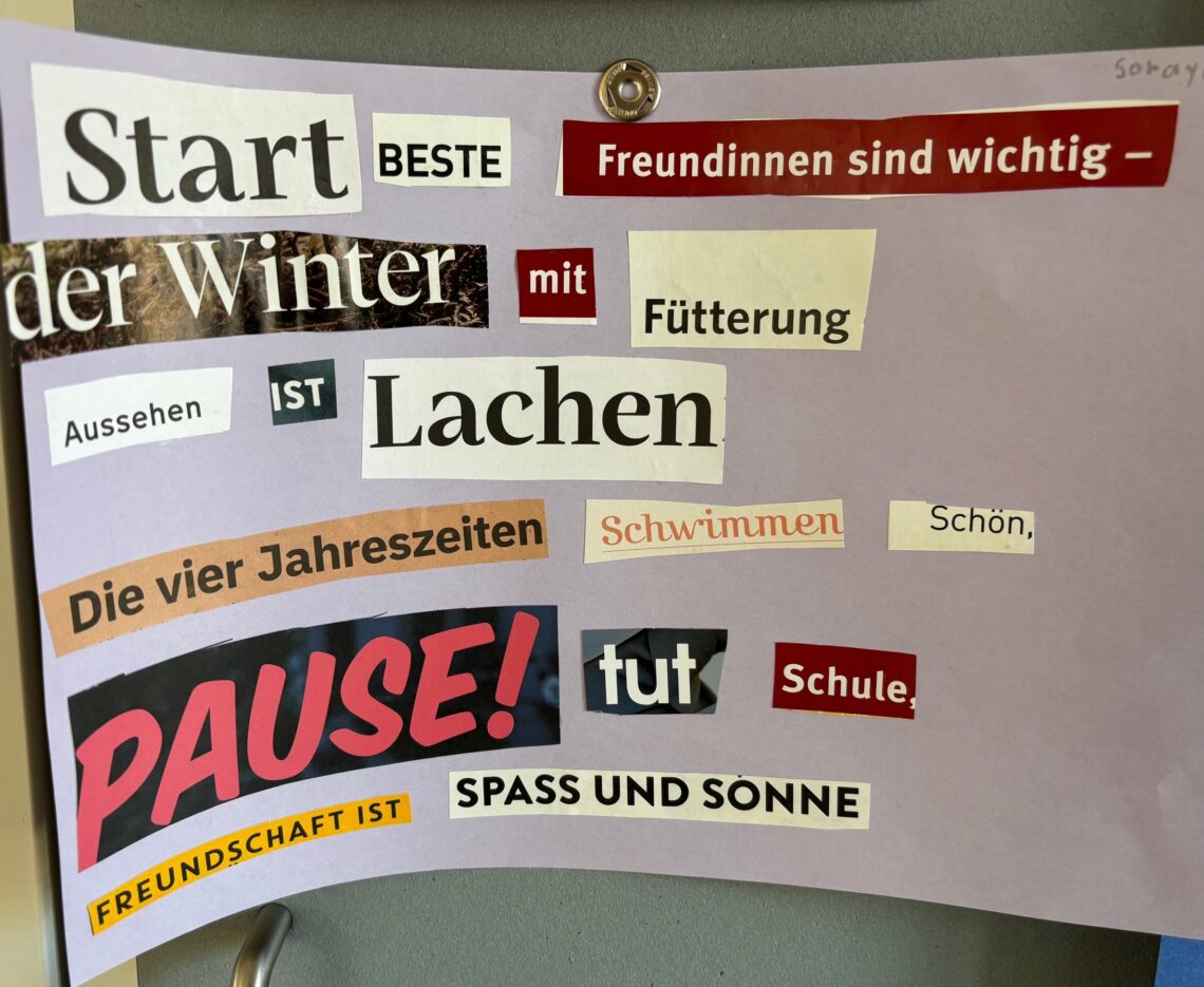 Bei schönstem Wetter machten sich drei Klassen auf den Weg zu einem dadaistischen Theater-Abenteuer. Die Vorbereitungen im Vorfeld waren bereits von lustigen Momenten geprägt und die Schüler*innen liessen sich nach anfänglichem Stirnrunzeln mit spielerischer Freude auf die Wort- und Bildexperimente ein.